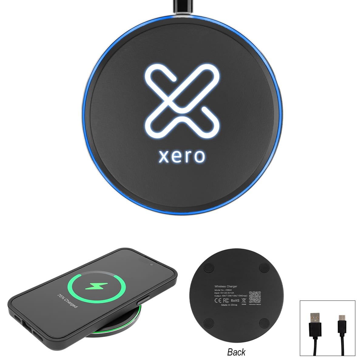 Fast Charging Capability. Multi-Color LED Edge Lights Illuminate When In Use. White LED Center Light Shines Through Imprint When In Use. 0.2500″ D x 4.0000″ W