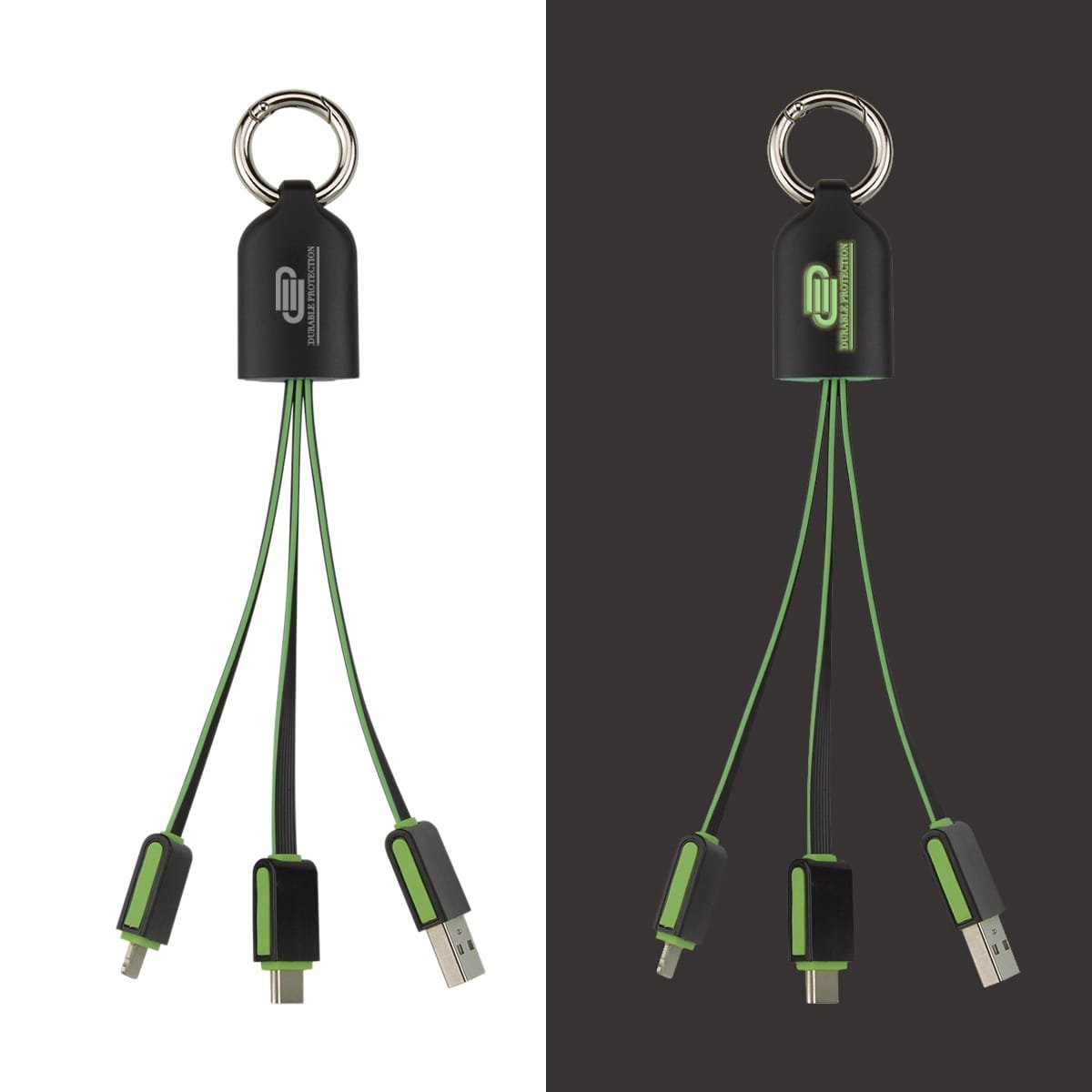 Compatible With Apple® 8-Pin, Micro USB And Type-C Devices Simply Plug The Cable Into A Powered USB Port And Then Into Your Device Or Smartphone. 1″ W x 6″ H