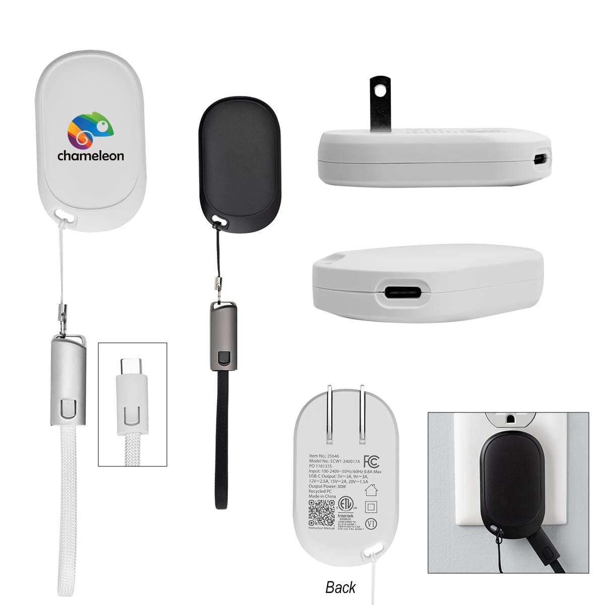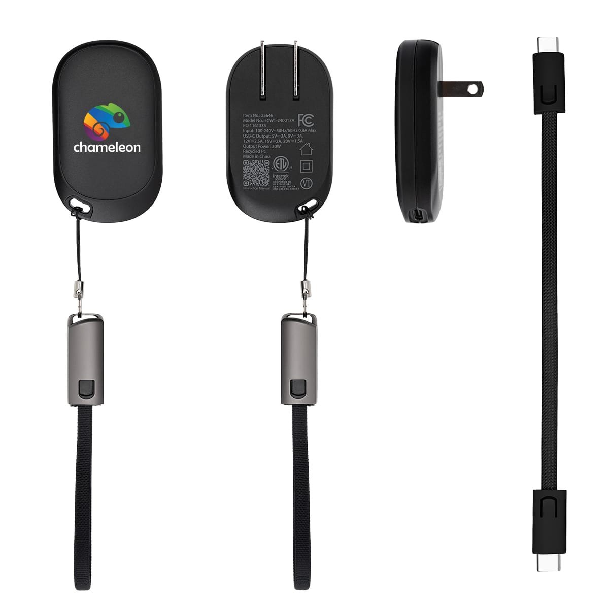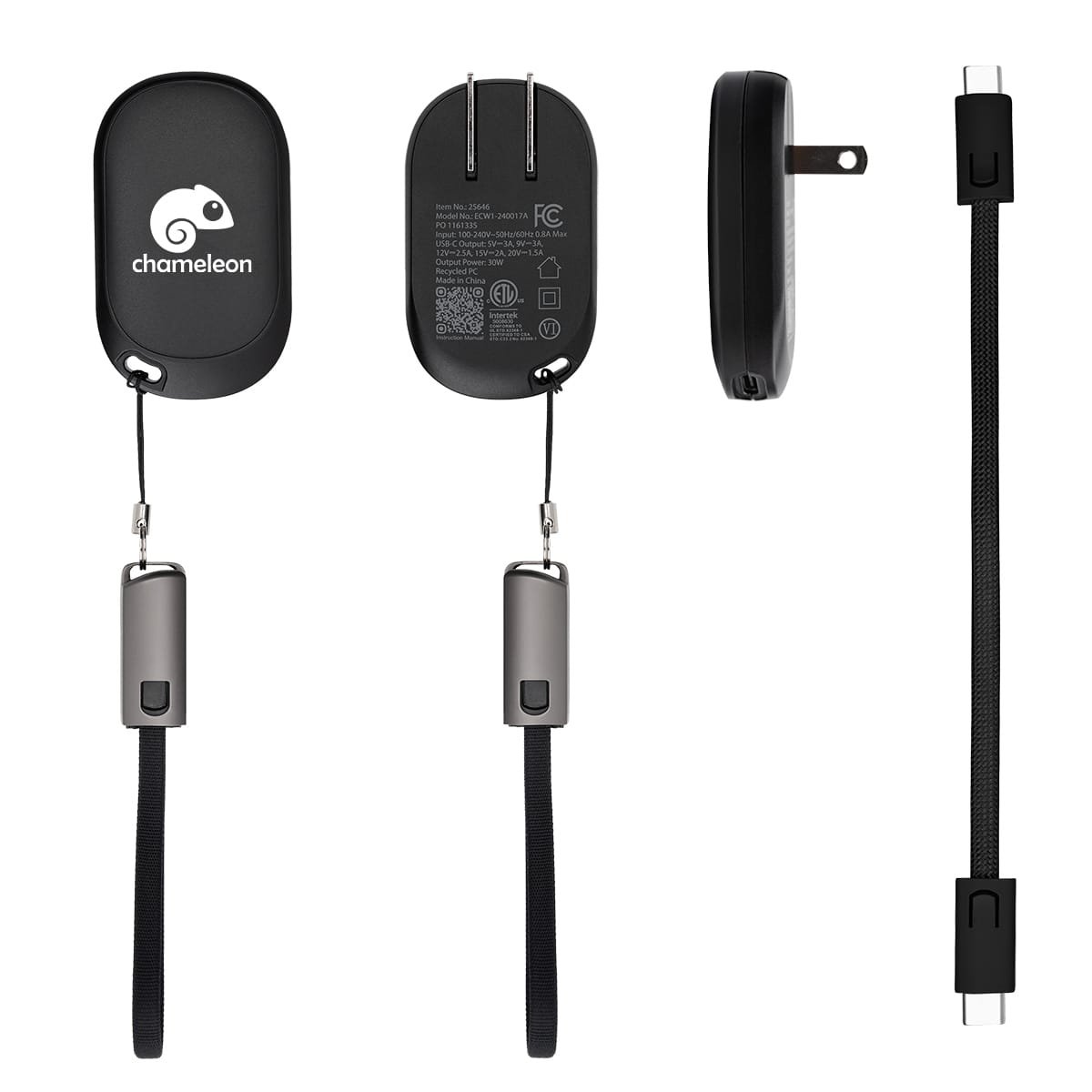 Made Of Recycled PC. Cord Doubles As A Loop For Carrying. Compact Design With Folding Prongs. 0.7500″ D x 1.7500″ W x 2.7500″ H
