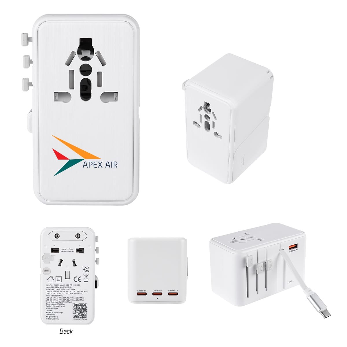 Custom 35w International Travel Adapter & Charging Cable
