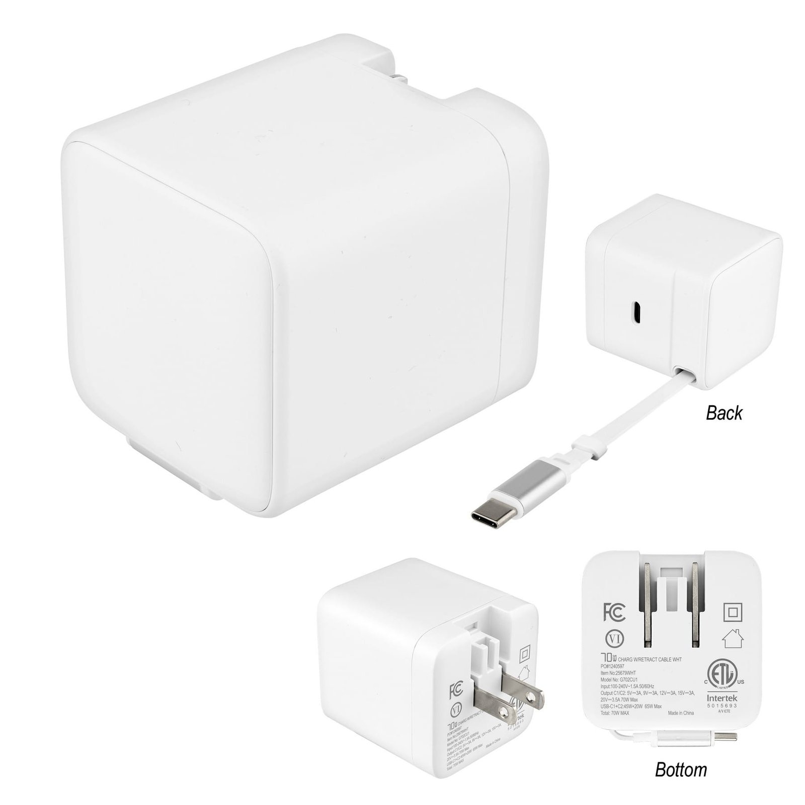 ETL Listed. Compact Size For Easy Travel & Storage. Features Type-C & A/C Inputs. 2.0000″ D x 2.0000″ W x 2.0000″ H