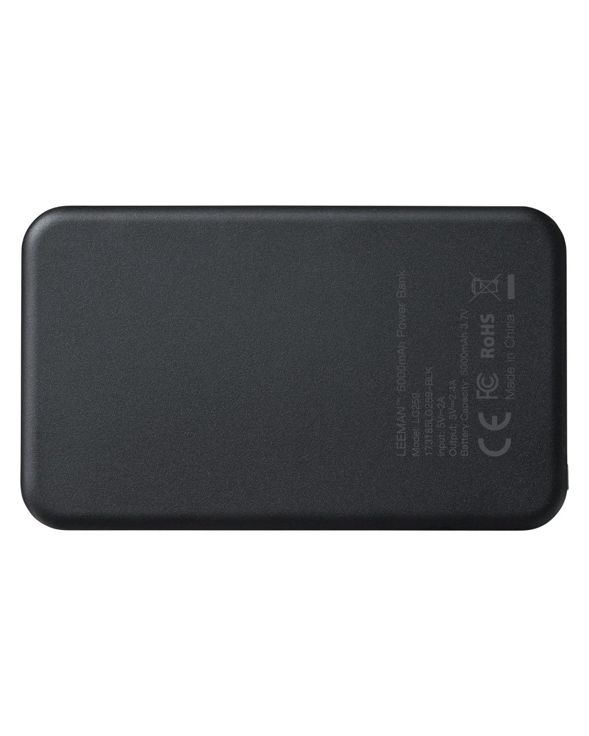 ABS Plastic Power Bank, emergency back up battery with elegant Italian PU top panel. Elevate your brand with the luxury leather-like finish, unique to this power bank. 5000mAh capacity; Input: 5V/2.0A, Output: 5V, 2.4A. Over current, over charge, over discharge voltage protection. Includes instruction manual and type-C to USB-A power bank charging cable; phone charging cables not included. Item must be charged prior to first use. UL Certified. **Cannot be shipped to Canada. 4.5200″ W x 2.6800″ H x 0.4700″ D