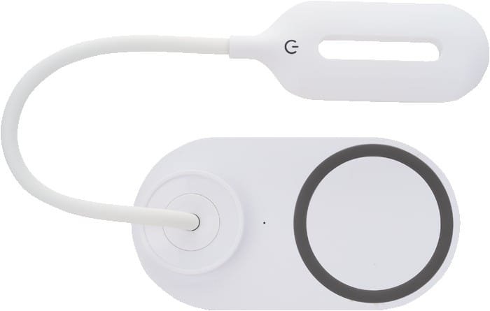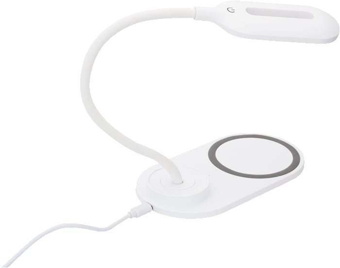 Light Output: 18 lumens Wireless Output: 5V/1A Wall charger not included Includes Micro USB charging cable DC Input: 5V/2A 360-degree flexible neck for optimum light adjustment and collapsible for travel/storage NOTE: If your device is not compatible with wireless charging you may require external wireless charging receiver or receiver case Lightweight, soft touch design LED lamp combined with a 10W wireless charging pad Blue indicator light on base ABS white plastic with non-slip phone ring and. 6.25″ D x 3.375″ W x 10″ H