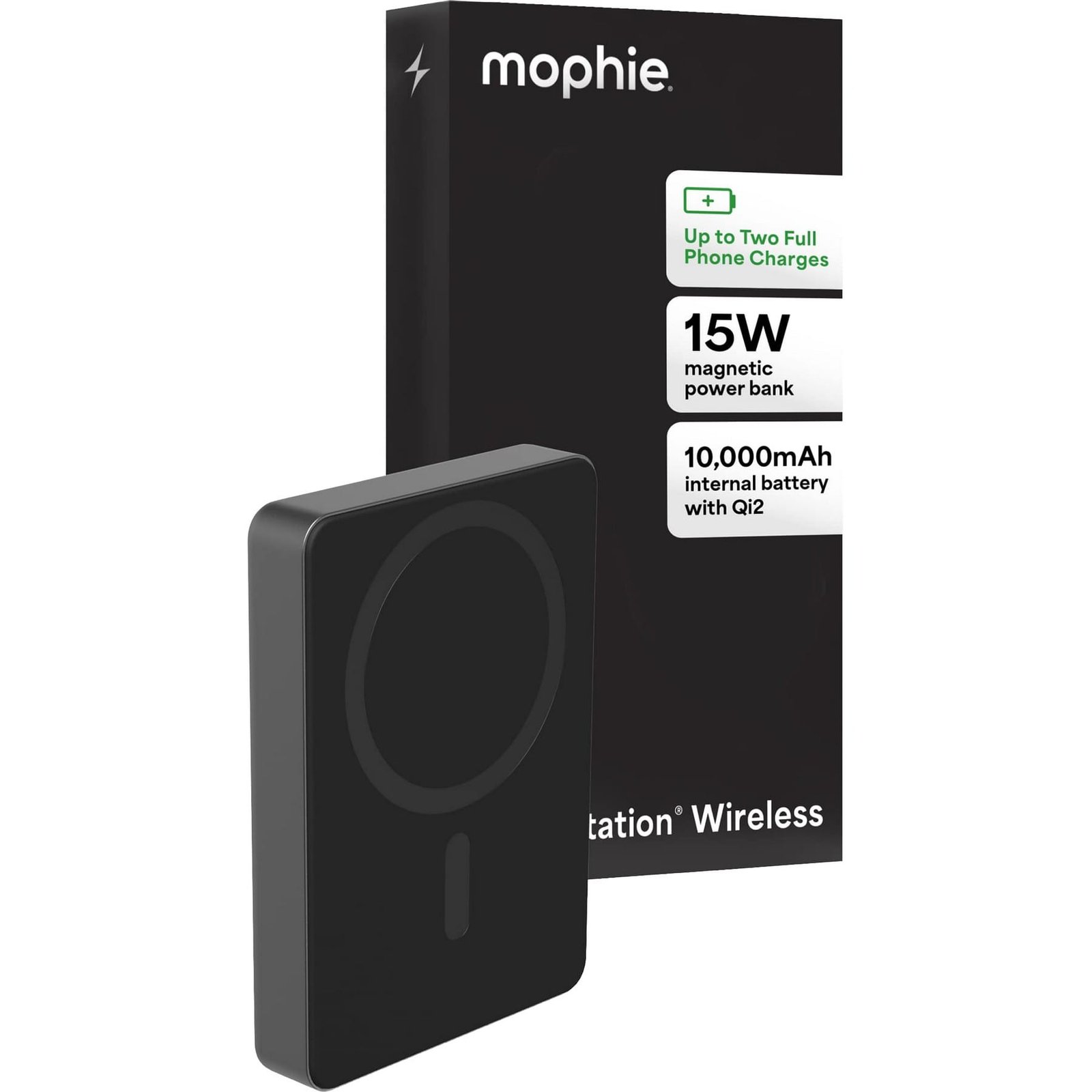 Stay powered up with the slim yet powerful Mophie Powerstation Wireless 10K Slim. Built for those who need more energy on the go, this compact power bank features a robust 10,000mAh internal battery—delivering up to two full phone charges to keep you connected throughout your busiest days. Experience effortless charging with Qi2-certified wireless technology and a MagSafe-compatible magnetic surface that securely snaps your device into place. Charging begins instantly on contact, so you can pow. 0.59″ D x 2.77″ W x 4.09″ H