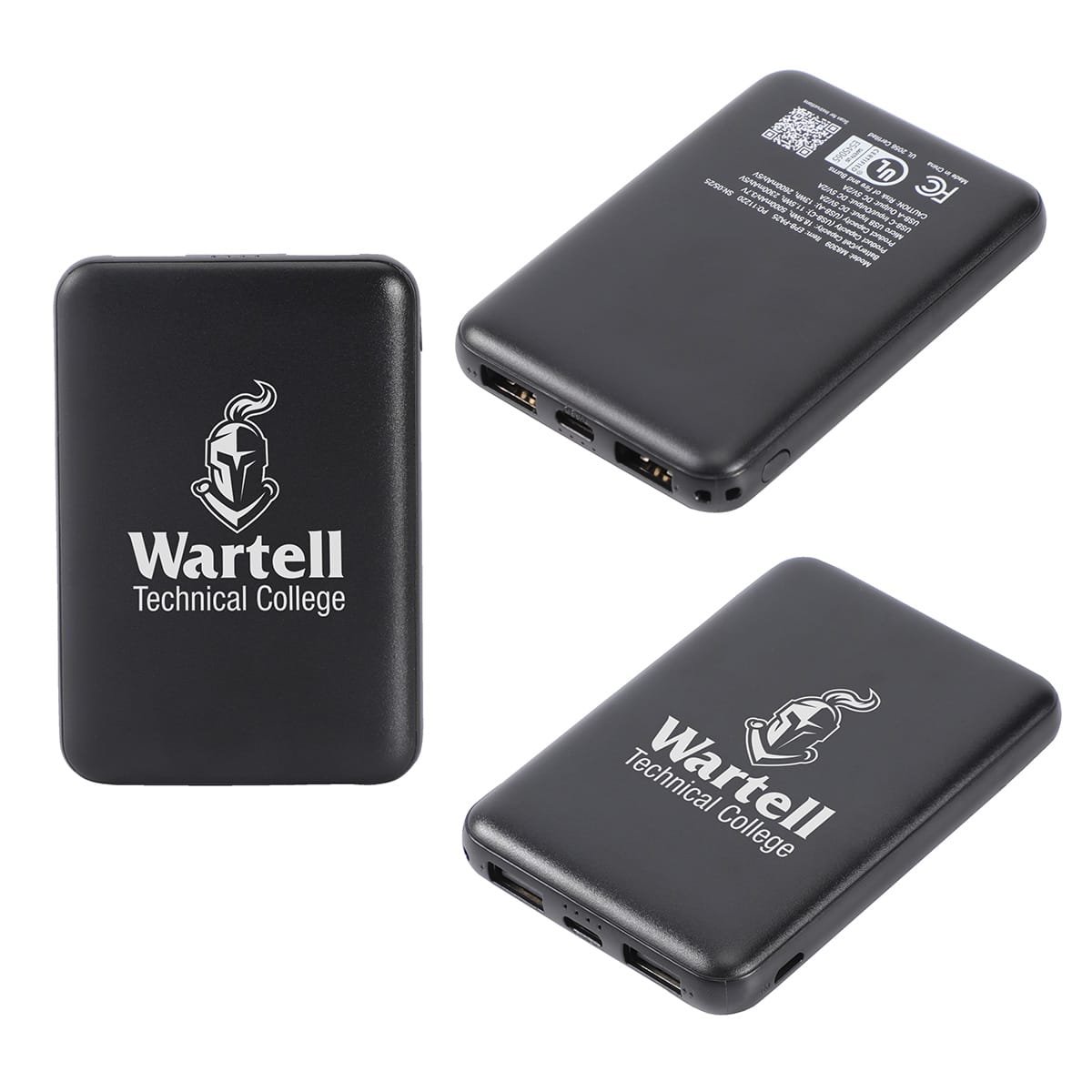 Stay connected wherever life takes you with the Pavilion 5000mAh UL-Listed Power Bank. Designed with a USB-C input/output, dual USB outputs, and a Micro USB input, it offers versatile charging for multiple devices at once. A QR code is printed on each item providing access to the latest user manual. Compact and travel-friendly, it delivers reliable 5V/2A power in a sleek design. With UL certification for trusted safety, this portable charger is perfect for work, travel, or everyday use. Complies with OU, Prop 65, UN38.3. 3.625″ L x 0.5″ W x 2.5″ H
