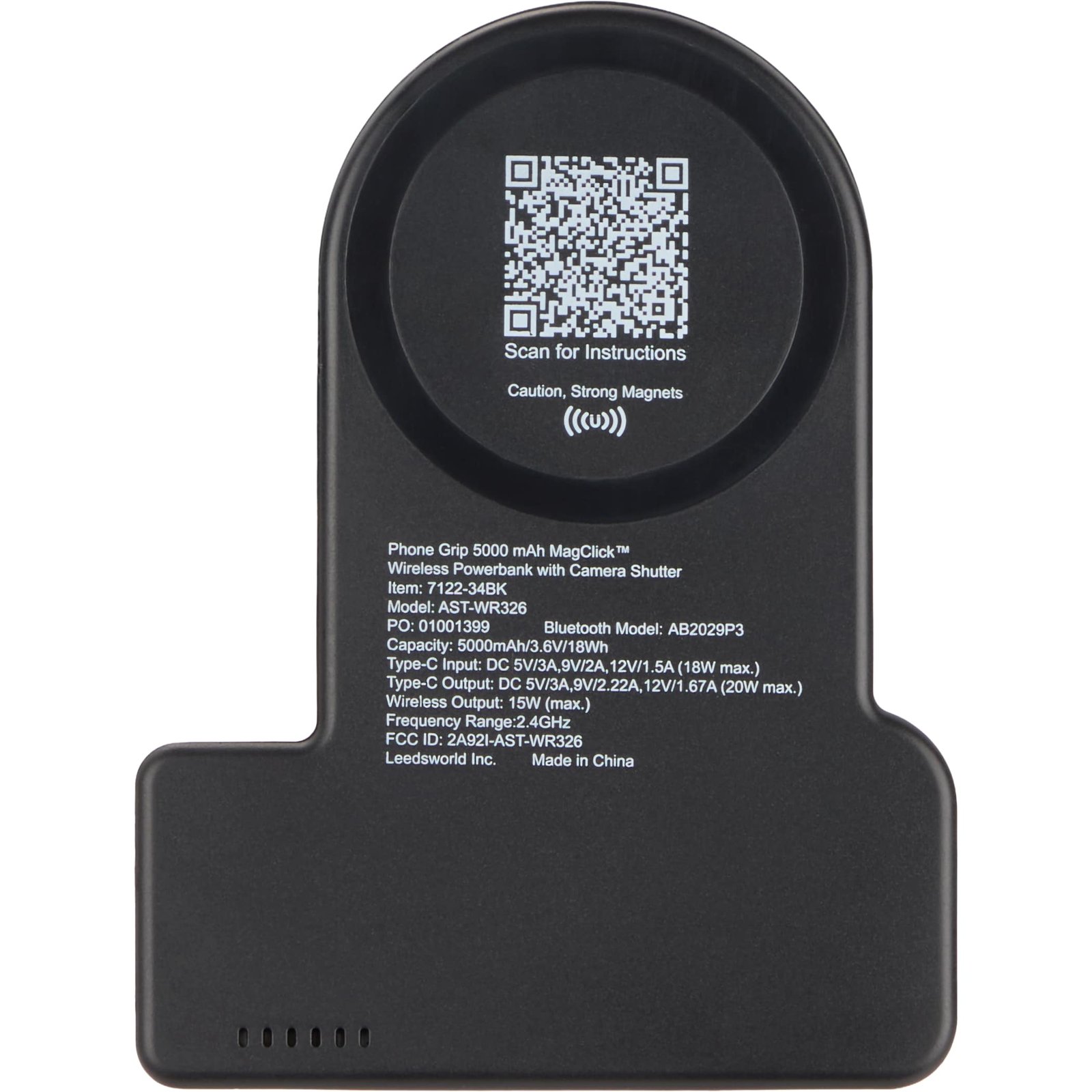 The Phone Grip 5,000 mAh MagClick™ Wireless Power Bank and Bluetooth® camera shutter contains a 5,000 mAh/18Wh rechargeable lithium battery that works as both a wireless charging power bank for a phone and a regular power bank. With Bluetooth® integrated into the powerbank, you can use the powerbank as a camera shutter. Attach your phone to the MagClick™ wireless charging pad, connect to Bluetooth, and press the camera shutter button on the powerbank to take a photo or video. If your phone doesn. 0.00″ D x 0.00″ W x 0.00″ H