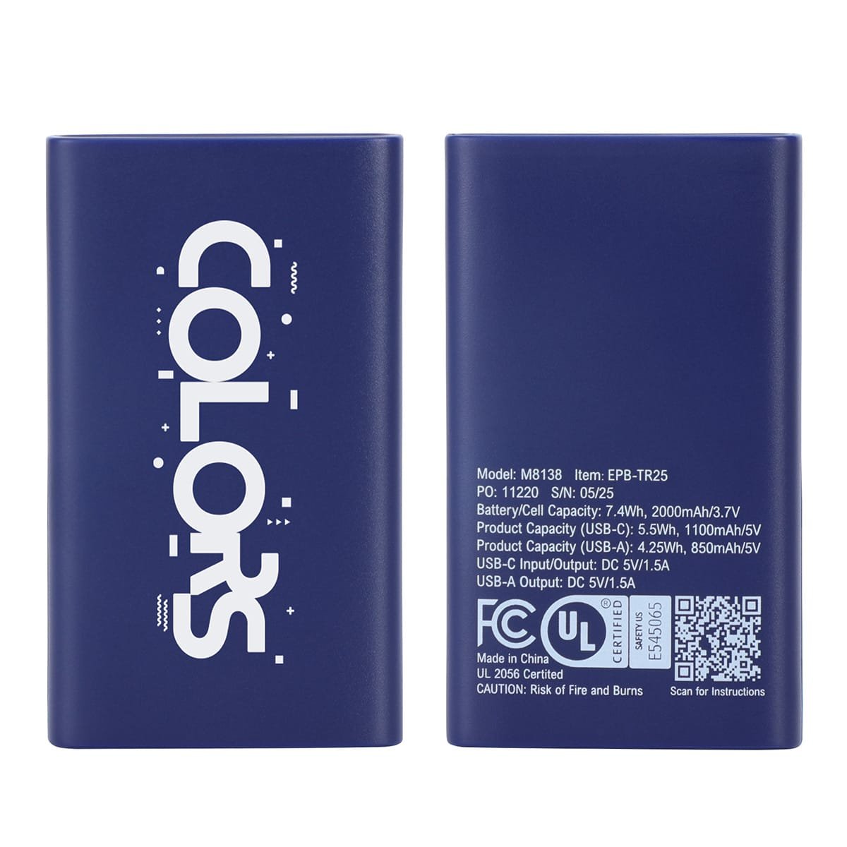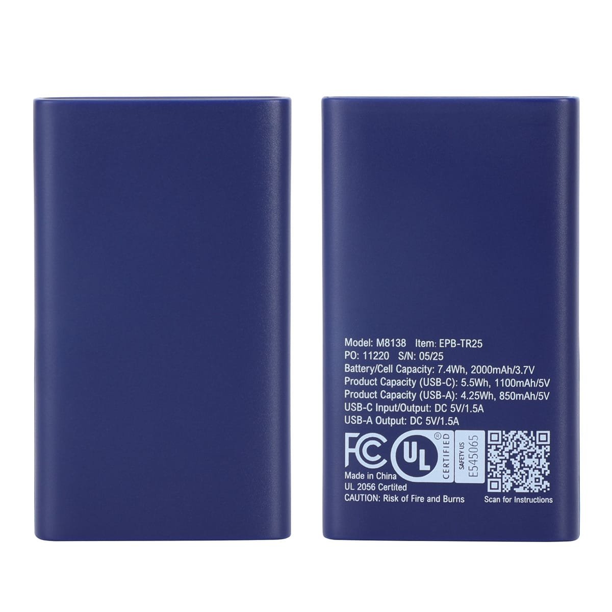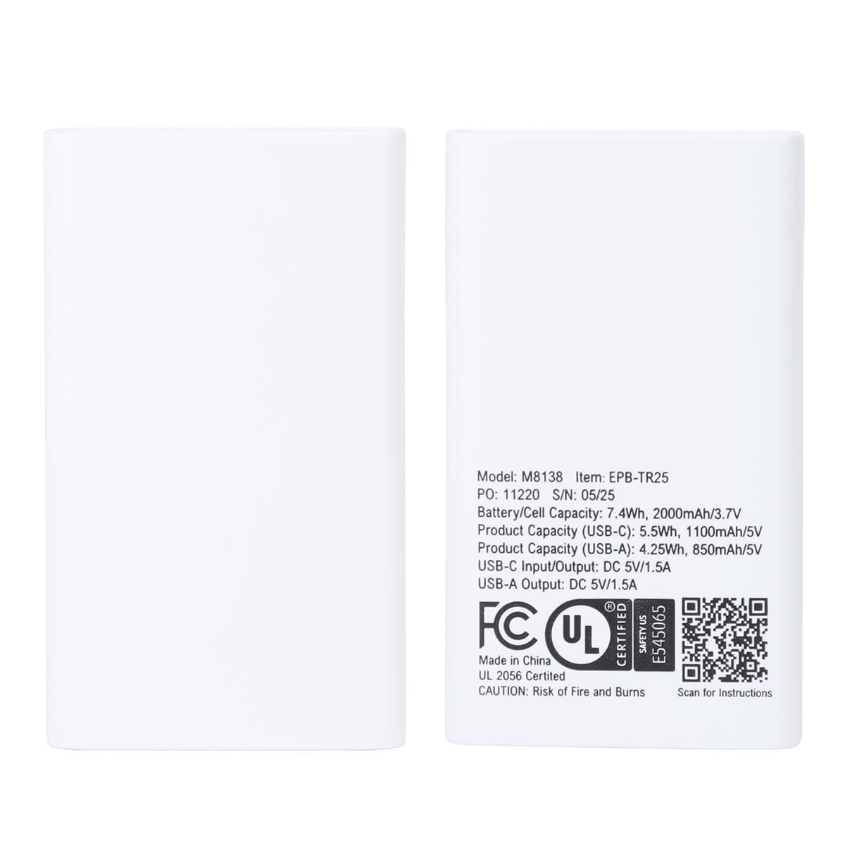 Power up your essentials with the Triumph 2000mAh UL-Listed Power Bank! Compact, lightweight, and travel-friendly, this entry-level charger is perfect for quick boosts on the go. Featuring a USB-C input/output and USB port output at 5V/2A, it delivers reliable performance when you need it most. Safety is built in with UL certification, giving you confidence with every charge. Complies with OU, Prop 65, UN38.3. 2.75″ L x 0.5″ W x 1.625″ H