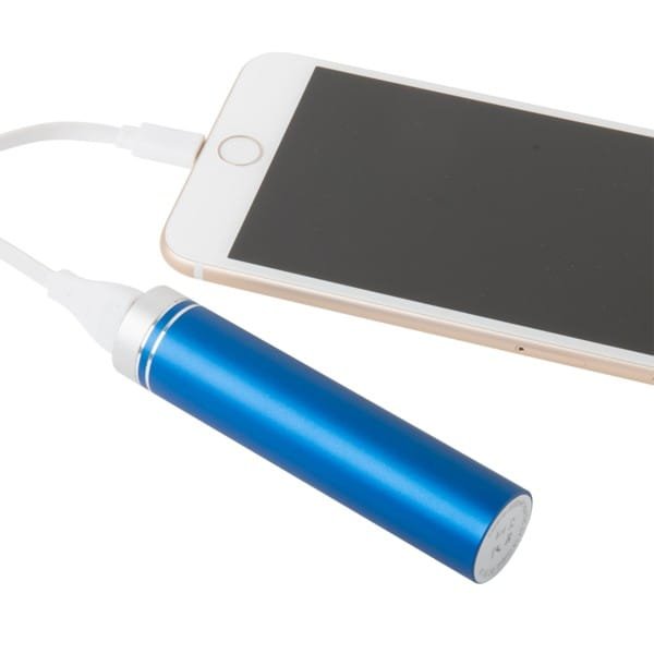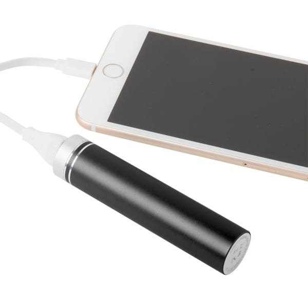 Charge your devices on the go with the petite Jupiter 2000 mAh UL Listed powerbank, Durable brushed aluminum exterior with metal band detailing and brushed silver cap, rechargeable Li-ion Grade A Non-Recycled battery, micro USB to USB cable included. DC-in: 1A, 500 mAh, DC-out: 1A, 500 mAh. Complies with UL. 3.75″ D x 0.875″ W