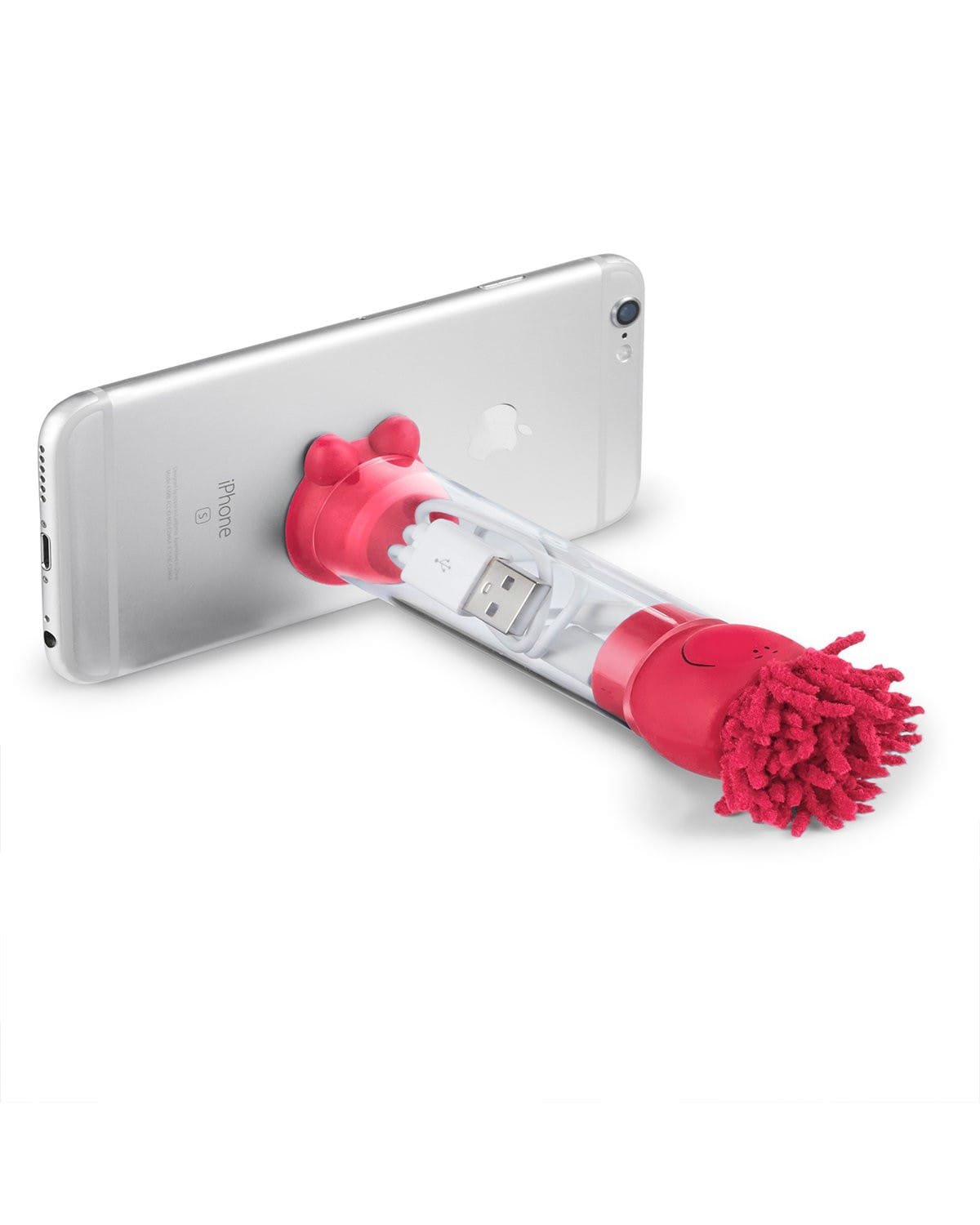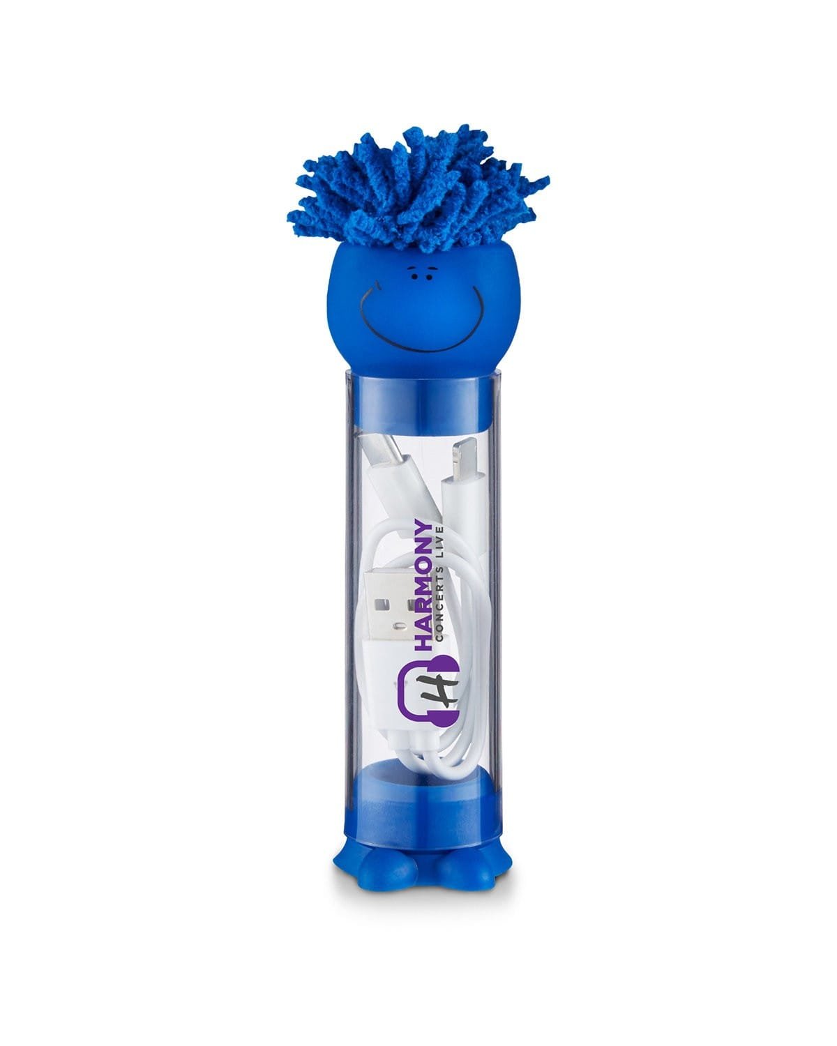 **A Prime Line® Exclusive!** Adorable MopToppers® friend is a case for charging cables (included), phone stand, and screen cleaner all in one. Clear AS Plastic case comes filled with PVC multi-cable and helps keep them tangle free. 3-in-1 USB charging cable with 1 USB C connector and one duo 5-pin and micro USB. MopToppers® head doubles as lid and the fabric hair can be used as a screen cleaner. Power/Technology: Input: 5V; Output: 1A; USB 2.0. Silicone base (shoes) can be used to position the device to search as phone stand. Not an Apple® authorized product, use at your own risk.