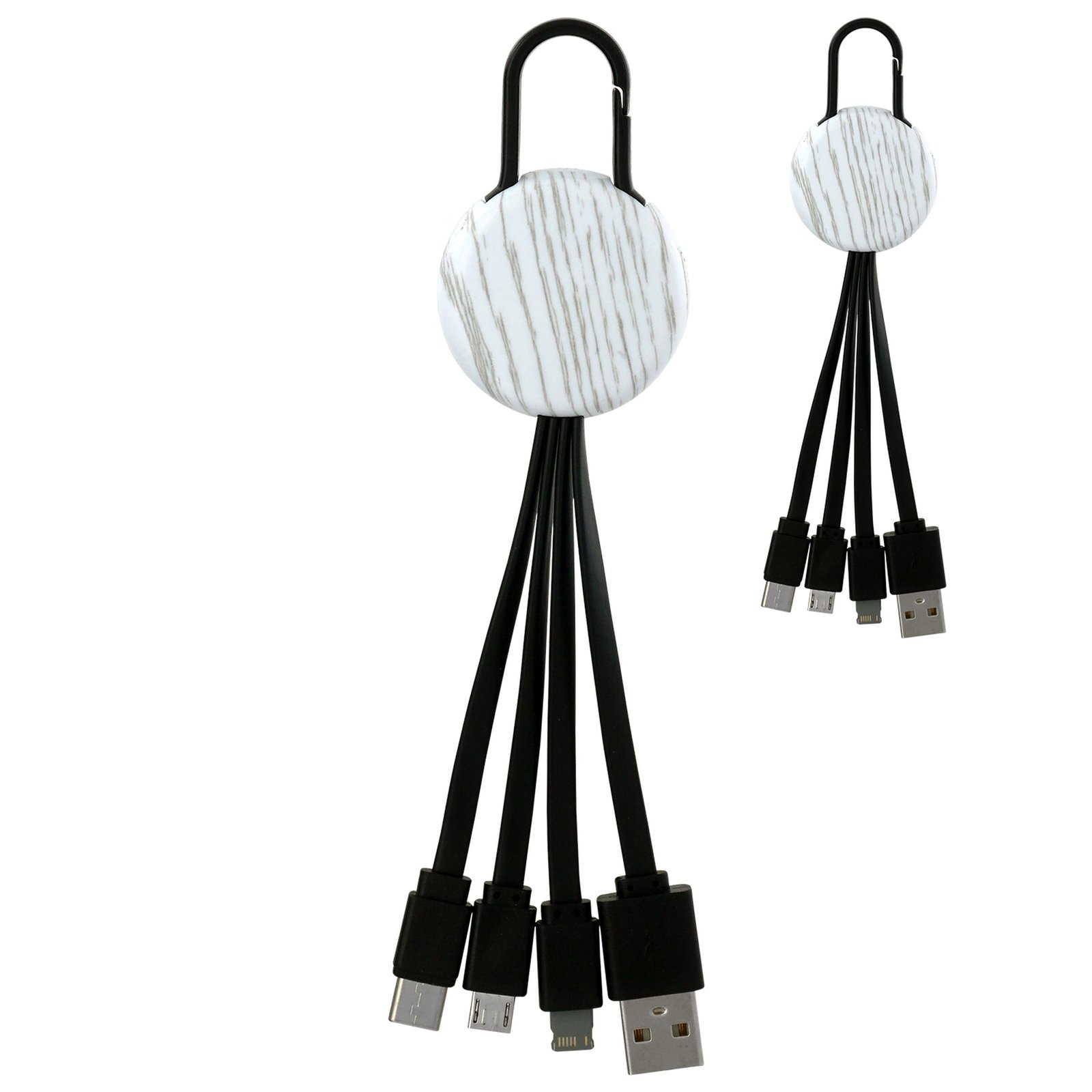 Introducing the versatile 3-in-1 charging cable housed in a sleek White wood case. This revolutionary cable features a Multiple USB adaptor that is fully compatible with IOS devices, Micro USB, and Type C USB. Crafted with precision and care, this innovative charging solution is proudly assembled in the USA. Experience the convenience and efficiency of the 3-in-1 charging cable, the perfect companion for all your charging needs. Upgrade to a higher level of connectivity with this premium charging cable. Complies with CE, Prop 65. 1.75″ L x 7″ H