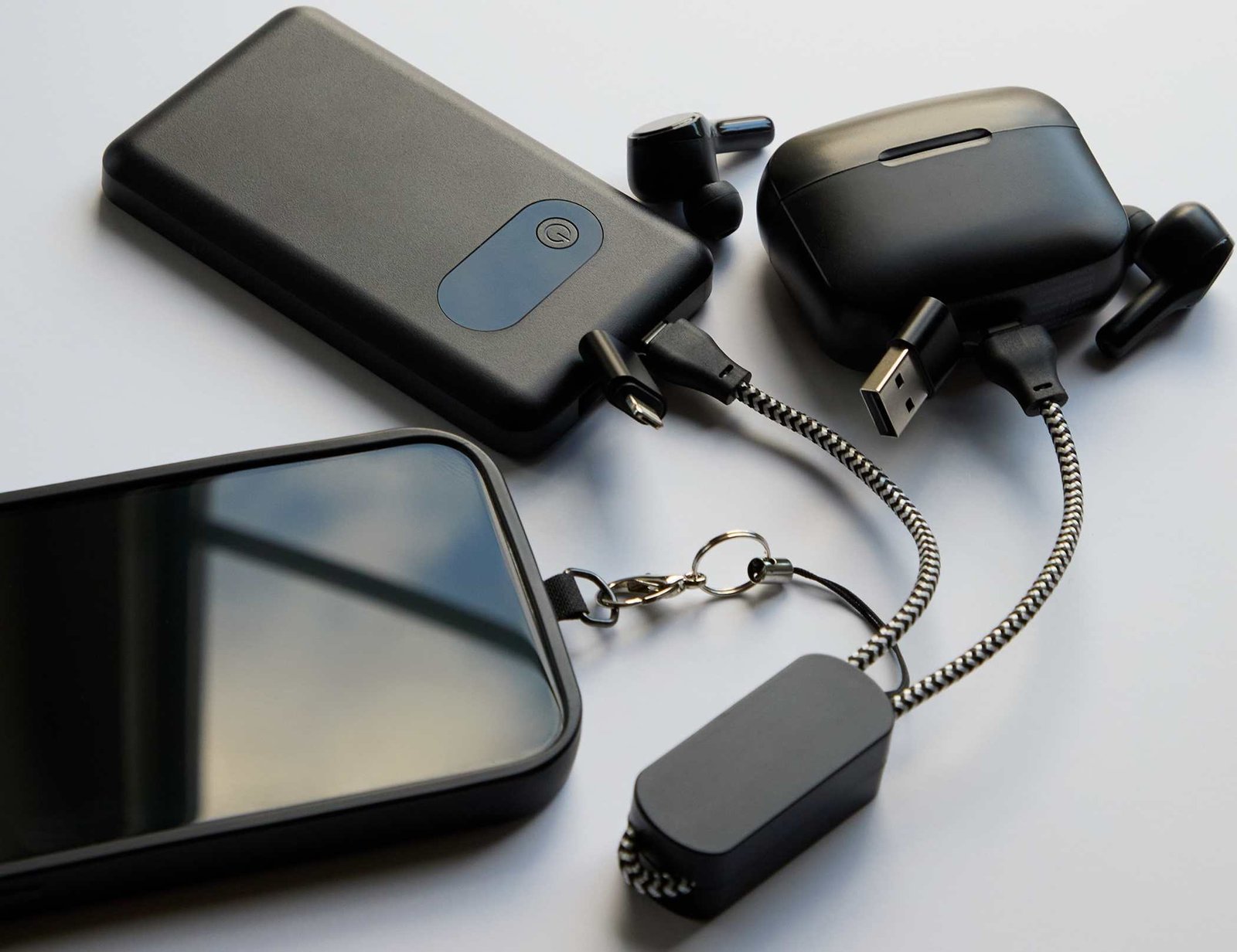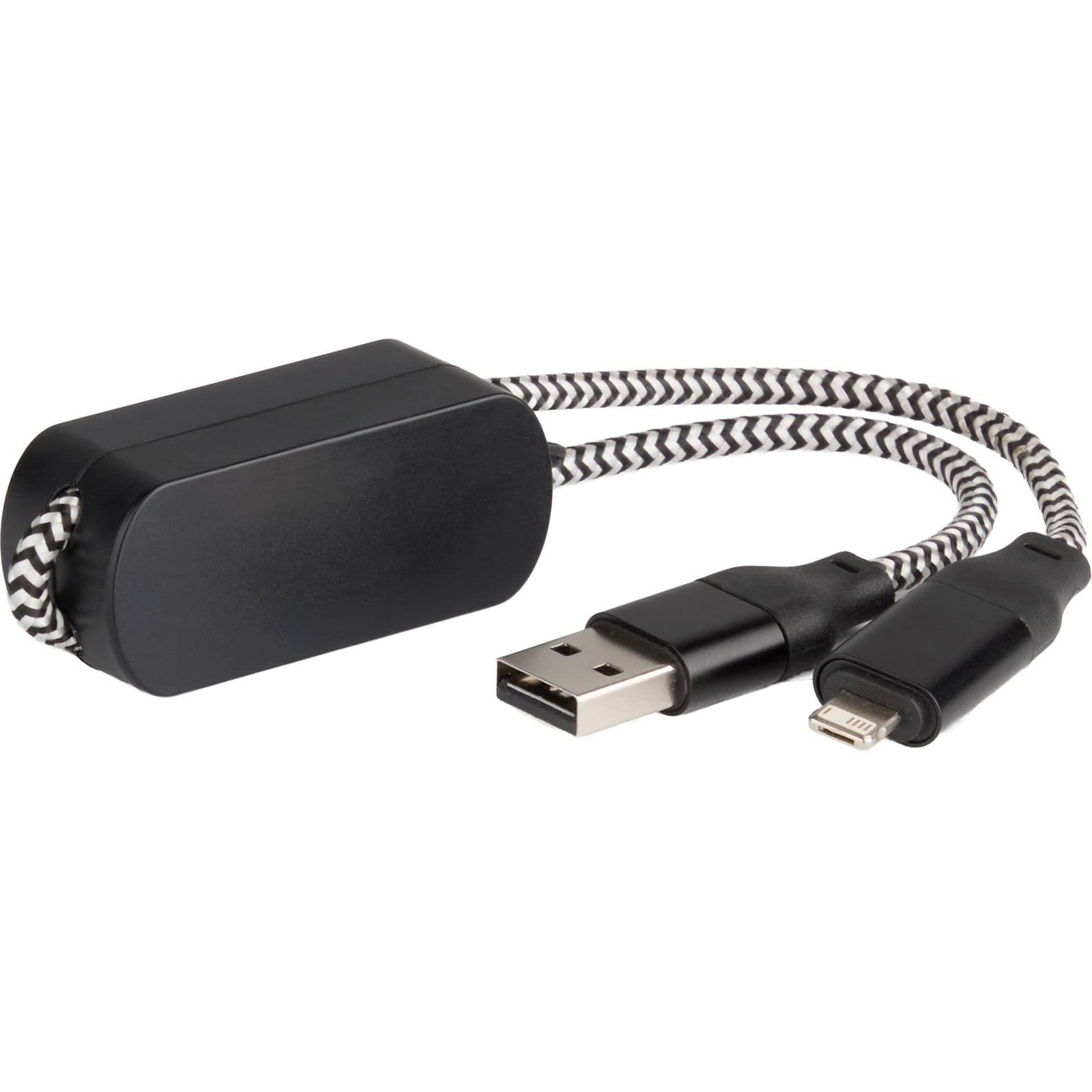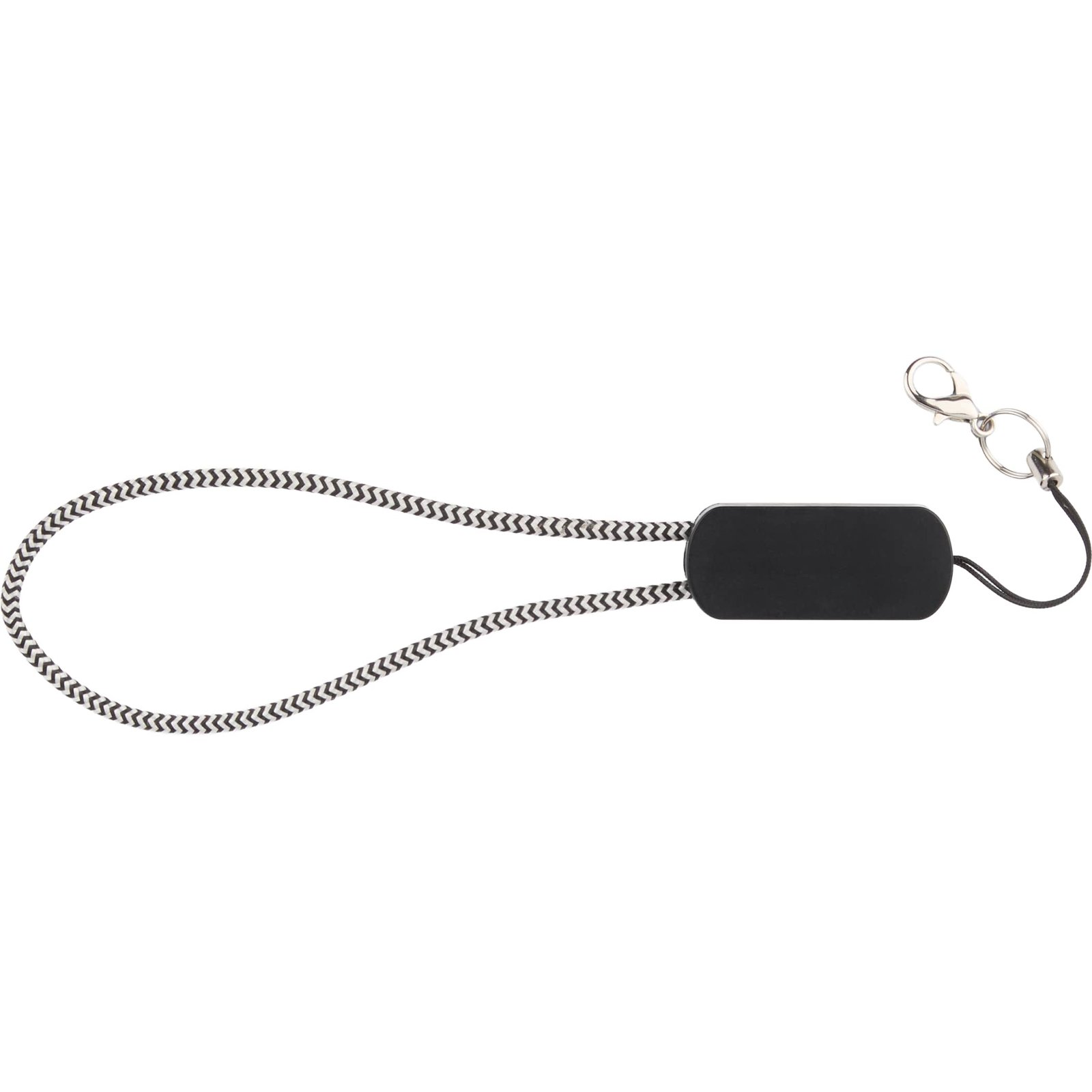 The Wrist Link 5-in-1 65W PD Charging Cable Lanyard is an 11-inch cable that can charge all major phone brands and Type-C input laptops. The cable includes a USB Type-A and a USB Type-C input tip on one side. The other end of the cable features a two-in-one dual-compatible tip for both older iOS and Micro input Android devices (up to 2A) and a USB Type-C output tip. Using a Type-C to Type-C cable with an appropriate AC adapter can deliver up to 65W to charge laptops with a Type-C port. It is re. 0.75″ D x 0.80″ W x 11.50″ H